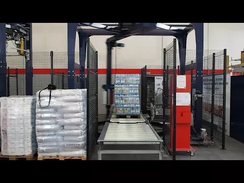 - cutting and sealing the foil are done exactly when removing the pallet from the wrapping area, so that a new pallet can be brought immediately